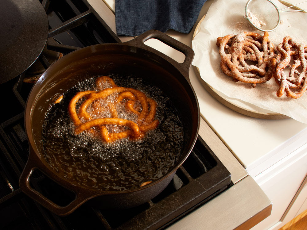 For many Americans, funnel cake and apple cider donuts are Proustian in the best way: One evokes hayrides and flannel; the other roller coasters and tank tops. Ours combines the best of both to make crunchy, airy, freeform cakes with all the flavors of a cider donut.