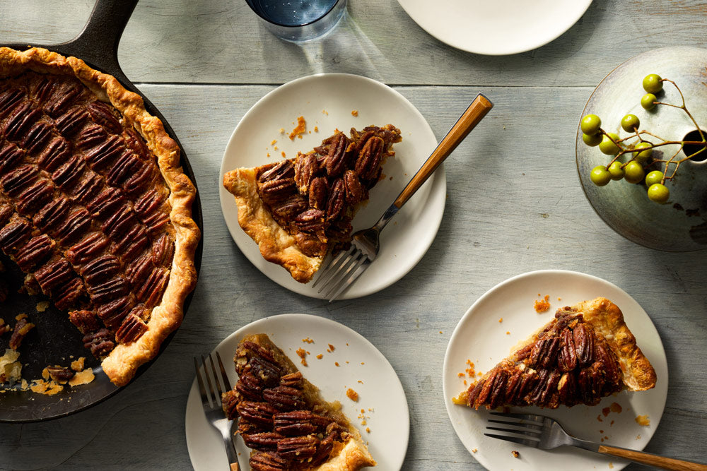 Preheat the oven to 375°F with the oven rack in the lower third of the oven. Place the pecans in an even layer on top of the cooled bar-baked pie crust. Set aside while you prepare the custard.