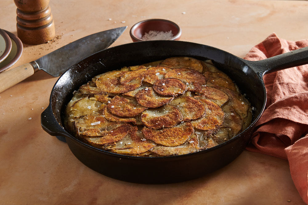 But our favorite eponymous recipe for cooking in cast iron—pommes Anna—was first created in Paris in the mid-nineteenth century by the chef Adolphe Dugléré. The actual “Anna” who inspired the dish is up for debate; some say it was the actress Anna Marie-Louise Damiens (stage name Anna Judic) while others credit Anna Deslions, a famous demimonde courtesan who frequented Dugléré’s restaurant, Café Anglais.