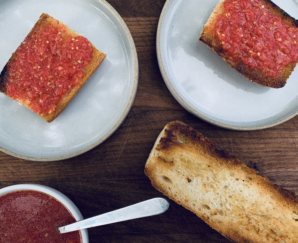 “Bread with tomato” is as simple as it sounds, a humble Catalonian staple that can be served as a light lunch (maybe topped with anchovies or a slice of jamón), as a summer dinner side or, if you want to break from tradition, topped with a fried egg for breakfast.