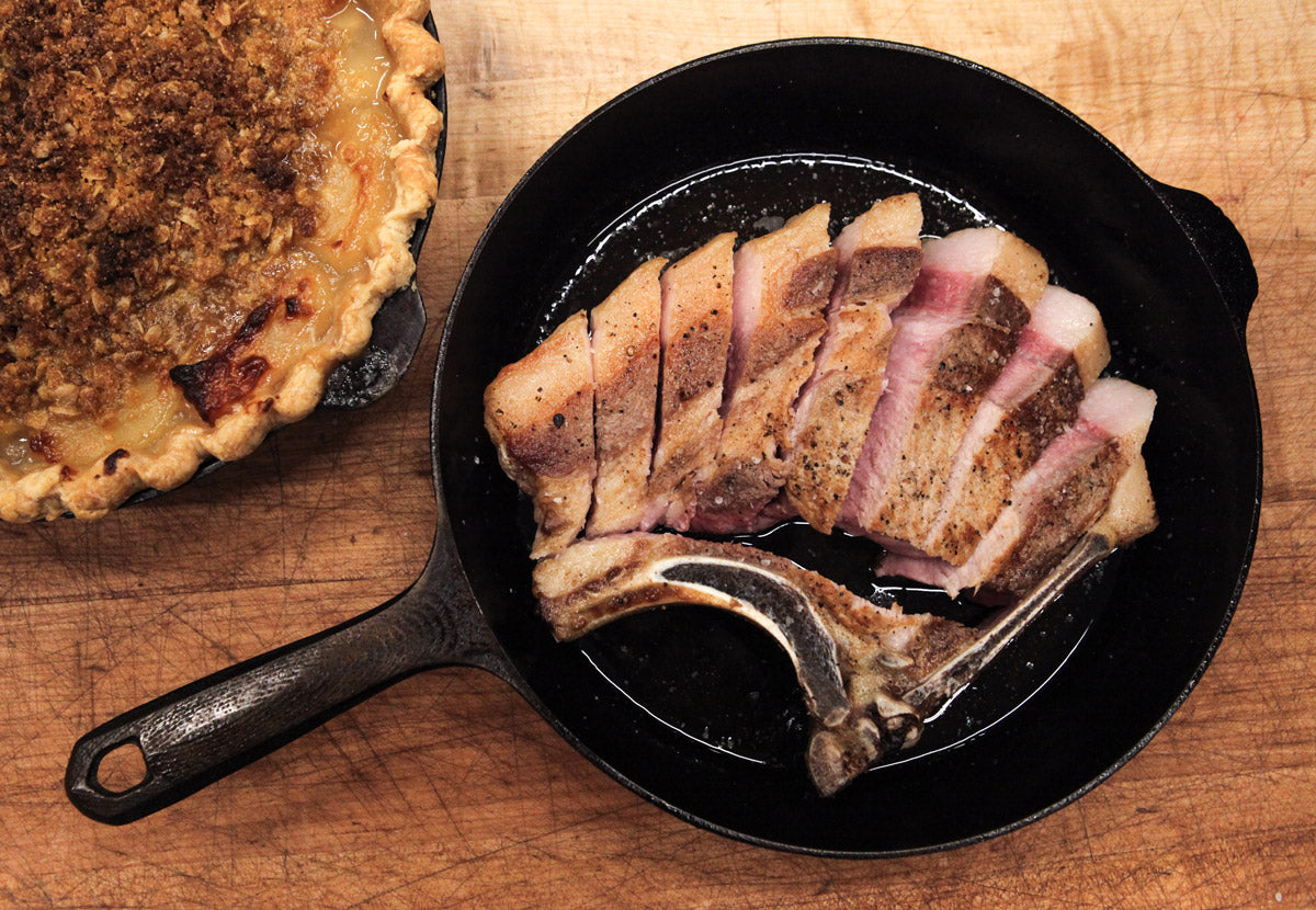 But there’s no reason why you can’t bring the reverse sear outdoors and use it on pork chops, chicken, lamb, or any thicker cut of meat. By first cooking the meat over the cool side of a grill or fire, then searing it in a hot cast iron skillet, you’ll end up with a chop that’s evenly cooked throughout with a beautifully burnished crust.