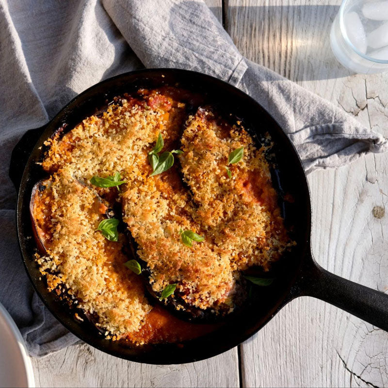 Serve in the skillet, but don't leave your leftovers sitting for long: moisture can become trapped by pie crust, especially if stored in the fridge. After dinner, it's best to clean promptly and make sure to apply Field Seasoning Oil before you put the pan away.
