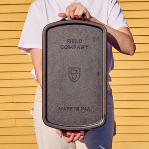 Our skillets are made in the USA using recycled iron and traditional green sand casting methods, just like the most celebrated vintage cast iron manufacturers, Griswold and Wagner. We use a machining process inspired by the best of vintage cookware, and then improved precisely dialed to be as smooth as possible while leaving just a touch of texture on surface to hold a great seasoning. The Field Skillet is the first smooth-surfaced pan that can hold an excellent seasoning since the early 1900s when they stone ground their pans.