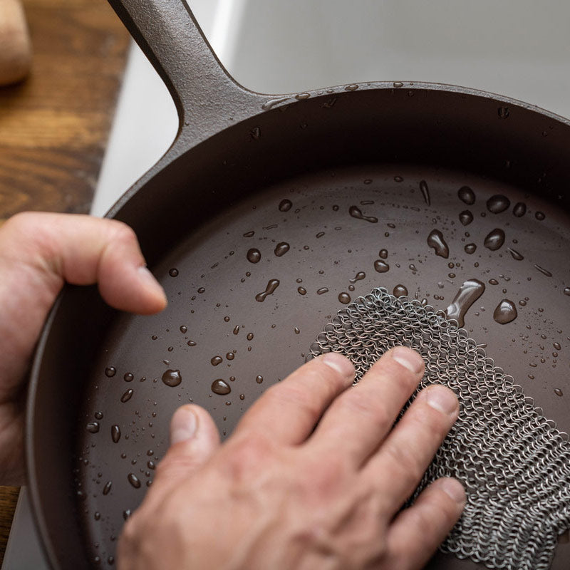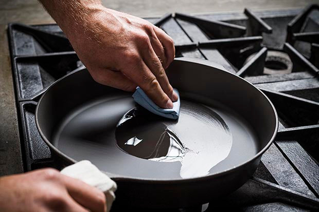 You don’t have to oven-season a Field Skillet, or any pre-seasoned cast iron pan; whether you want to is up to you. Early in the lifetime of your pan, some proteins like bacon and eggs may stick a bit. This is fine, and all part of the gradual seasoning process — and our Seasoning Oil is engineered to help. The most important thing to do is cook with it often, and to follow our guidelines below over the first 15 to 20 sessions with your pan:
