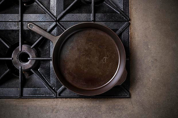 These days, most cast iron manufacturers pre-season skillets, us included. You can cook with these pans right out of the box, but they won’t actually be totally non-stick. The Field Skillet, which comes coated with three seasoned layers of grapeseed oil, is actually less pre-seasoned than other producers, because we focus on baking seasoning into the pan, not on top of it. But we’ve found this approach develops better subsequent layers of seasoning over time, compared to other pans that try and speed up the process by covering up the iron with a more cosmetic top coat.