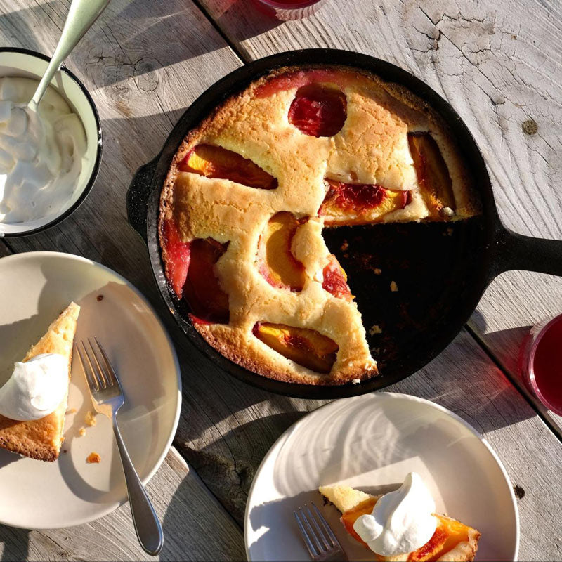 This is the kind of cake that doesn’t ask much of you. There’s no creaming butter, no fussy layers, no perfect timing. Just a handful of pantry ingredients, your favorite citrus (or not), and a No.6 Field Skillet. The result is a deeply fragrant, tender olive oil cake that’s perfect for an afternoon tea, slow breakfast, or casual dessert for two or three.
