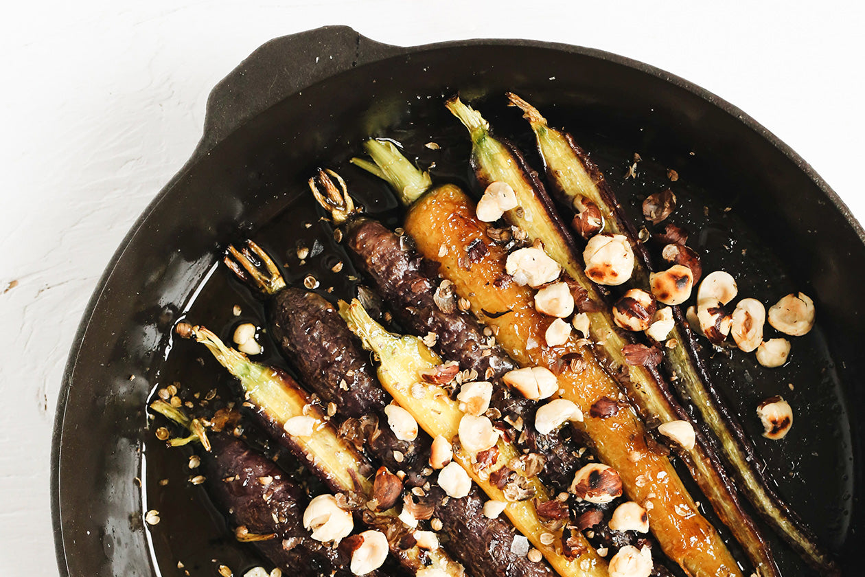 In your Field Skillet, add the carrots and drizzle with the olive oil and season with kosher salt. Using your hands, toss the carrots until they are evenly coated in the olive oil and arrange in a single layer.