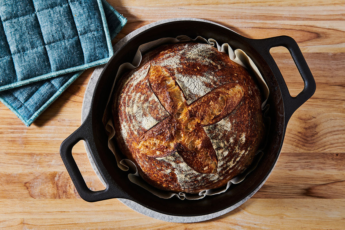 Not only does this tweak remove a day’s worth of work, it allows you to pull unfed starter (aka discard) from the refrigerator any time you like, mix up some dough, and be on your way to bakery-quality bread. The entire process takes 2 or 3 days (depending if you start in the morning or at night), and about 15 total minutes of active labor. And as with other bread recipes, baking the dough in a Field No.8 Dutch Oven ensures a round, gorgeously browned loaf.