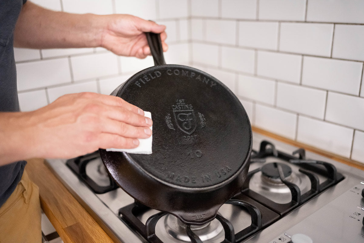 To land on our final blend, we tested these oils in a variety of proportions and optimized for seasoning performance, first and foremost, as well as neutral scent, texture, and ease of application. Use Field Seasoning Oil after every meal, and watch your skillet’s condition improve.