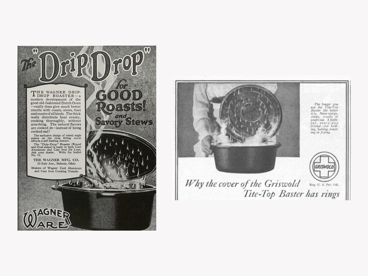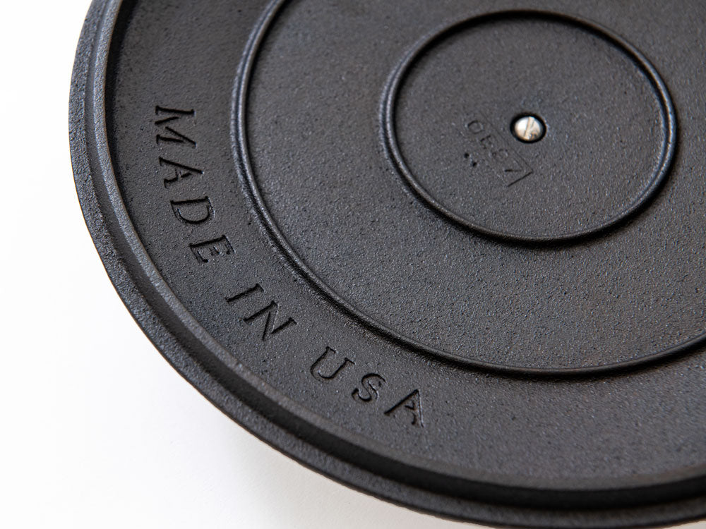 Field Skillets draw inspiration from the lighter, smoother skillets of America’s cast iron manufacturing heyday — especially vintage pieces by Griswold, of Erie, PA, and Wagner, of Sidney, OH. For our first lid, we stuck to the design principles of the Field Skillet — it's lightweight, too, and matches the simple silhouette of our original pan — and put our spin on a century-old cast iron innovation.